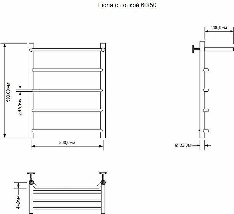 Полотенцесушитель электрический Aquanet Fiona 60х50 Тэн R с полкой 00281998