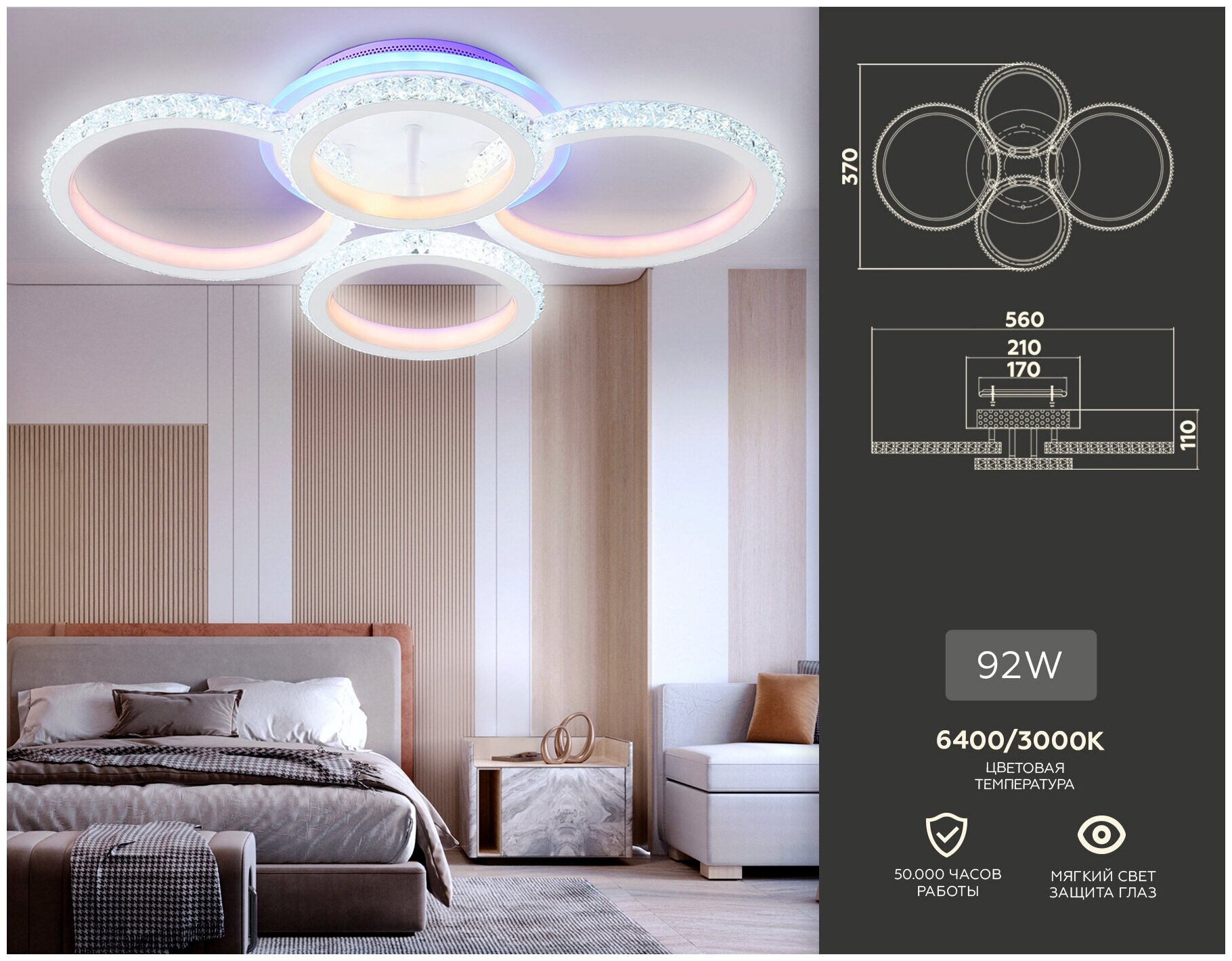 | Дополнительные характеристики | с помощью мобильного приложения RW.Light и радиоуправляемого пульта вы сможете регулировать цветовую температуру, яркость освещения и ночной режим |