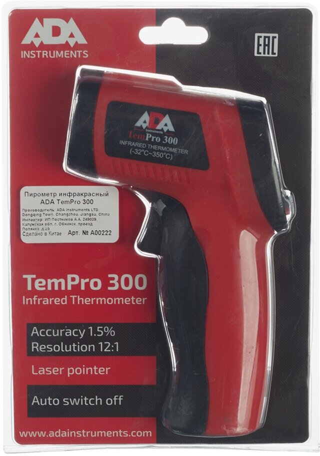 - Пирометр (термодетектор) ADA Пирометр TemPro 300 (от -32°С до 350°С)