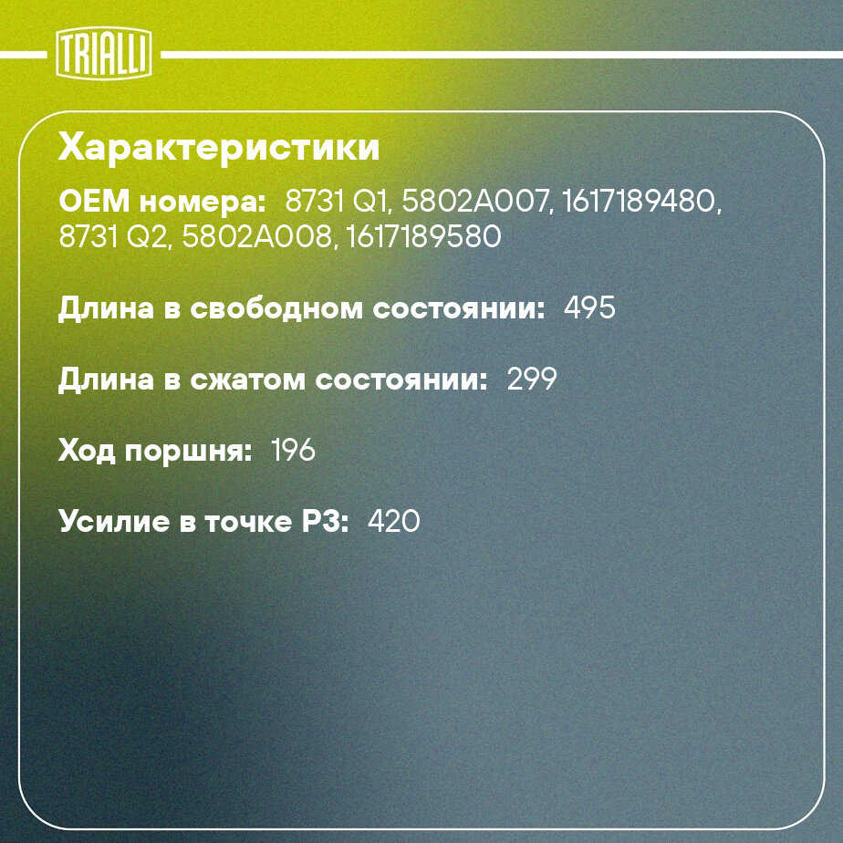 Амортизаторы капота Trialli