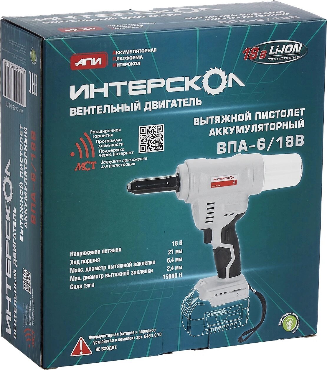 Заклепочник аккумуляторный ИНТЕРСКОЛ ВПА-6/18В (без акк без з/у) (646.1.0.70)