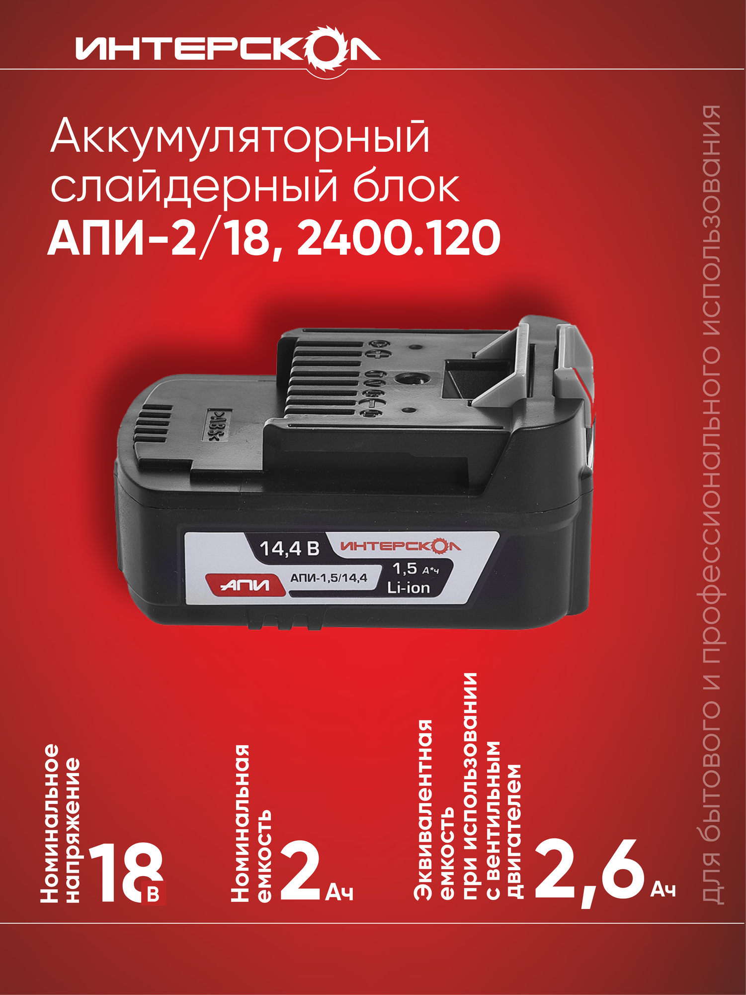 Сервис сравнения цен СкидкаГИД предлагает сравнить цены на товар «Аккумулятор Интерскол Li-Ion 18В 2Ач (2400.120)»