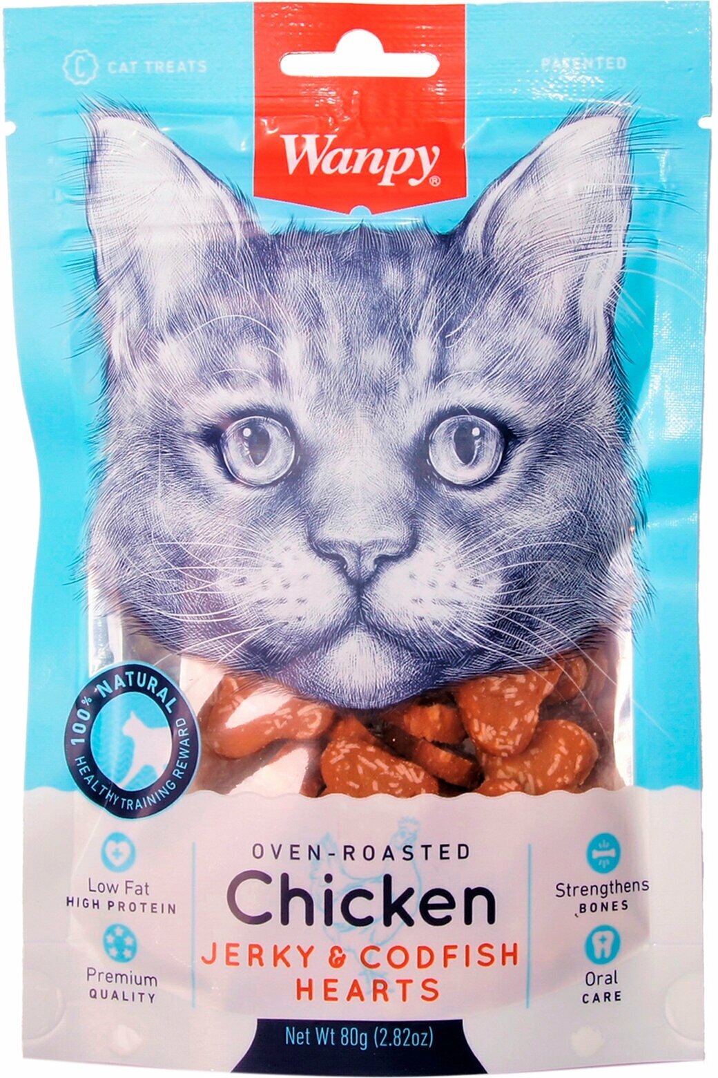 Wanpy Cat Лакомство для кошек "Сердечки" (Курица и треска 80 г.)