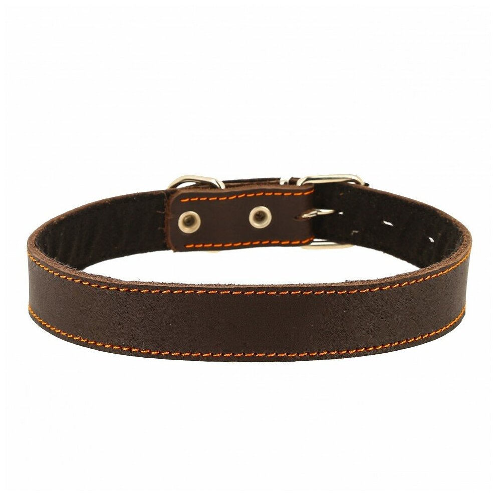 Классический ошейник с подкладкой из синтепона изготовлен из натуральной высококачественной кожи с использованием крепкой металлической фурнитуры.Ошейник имеет:- стальное полукольцо;- 4 отверстия для регулировки длины;- металлическую застёжку.Ширина: 3 см.Обхват шеи собаки: 49-58 см.Цвет: черный, коричневый. Внимание! Выбор цвета не предусмотрен.