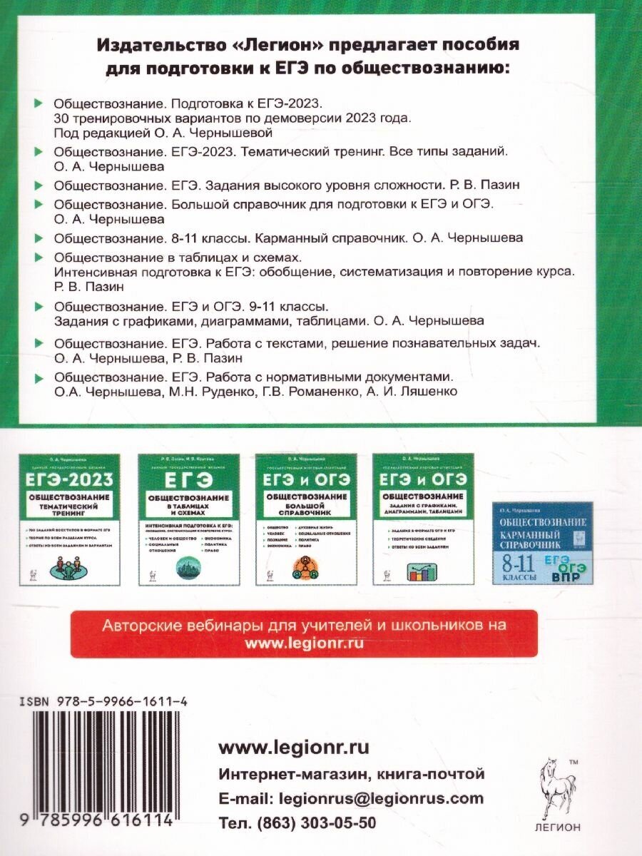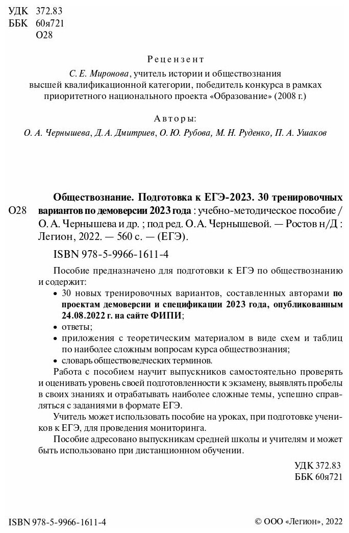 ЕГЭ 2023. Обществознание. 30 тренировочных вариантов по демоверсии 2023 года (Чернышева Ольга Александровна; Рубова Оксана Юрьевна; Дмитриев Дмитрий Андреевич); Легион, 2022