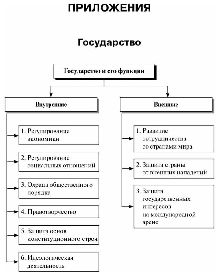 приложения с теоретическим материалом в виде схем и таблиц по наиболее сложным вопросам курса обществознания;
