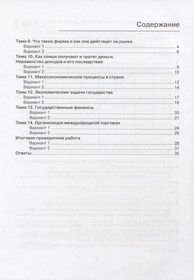 Пособие поможет учителю проверить образовательные достижения учеников 11 класса по экономике, а ученикам осуществить самопроверку. Темы работ соответствуют темам курса 11 класса. Каждая из работ предлагается в двух равноценных вариантах. В конце пособия даны итоговая работа в двух вариантах, а также ответы ко всем работам.