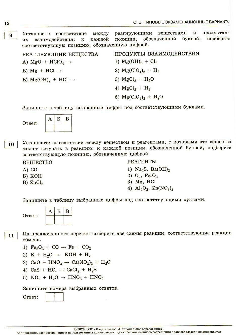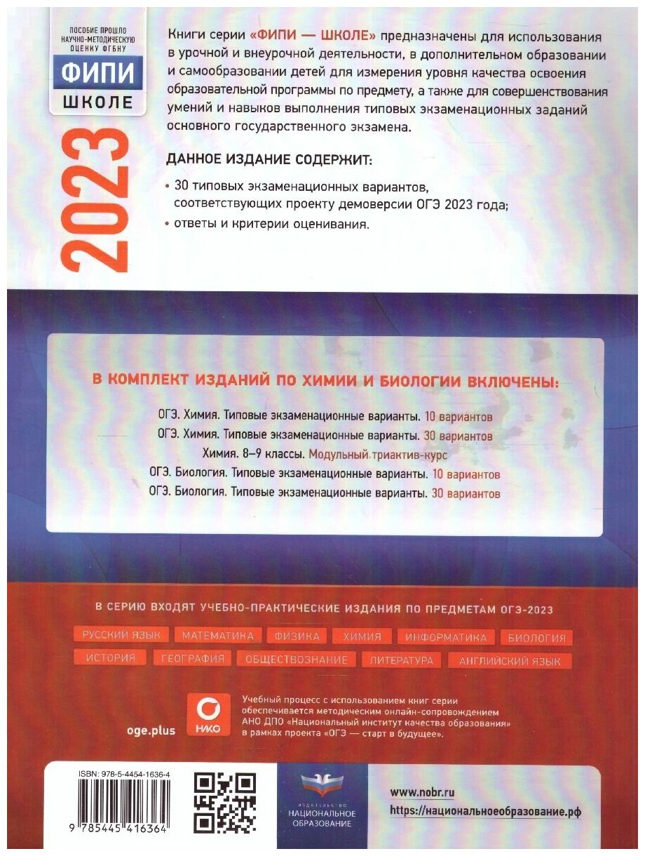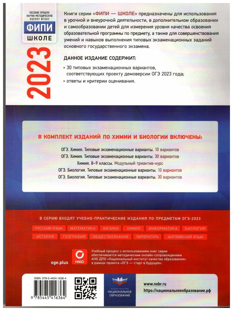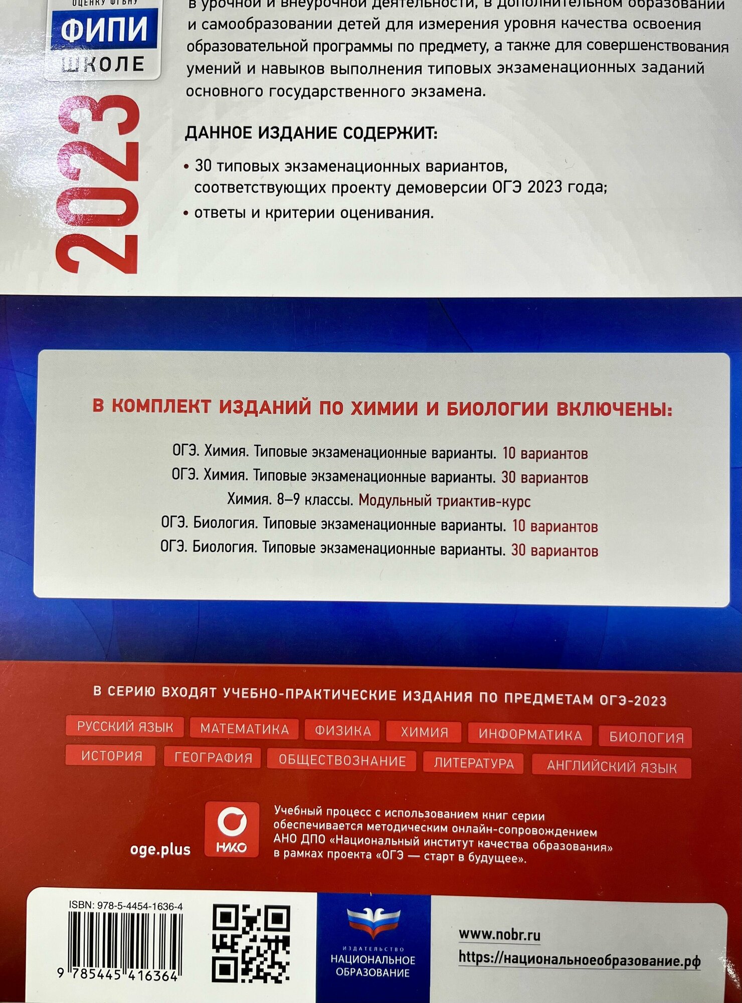 • 30 типовых экзаменационных вариантов, составленных в соответствии с проектом демоверсии КИМ ОГЭ по химии 2023 года;