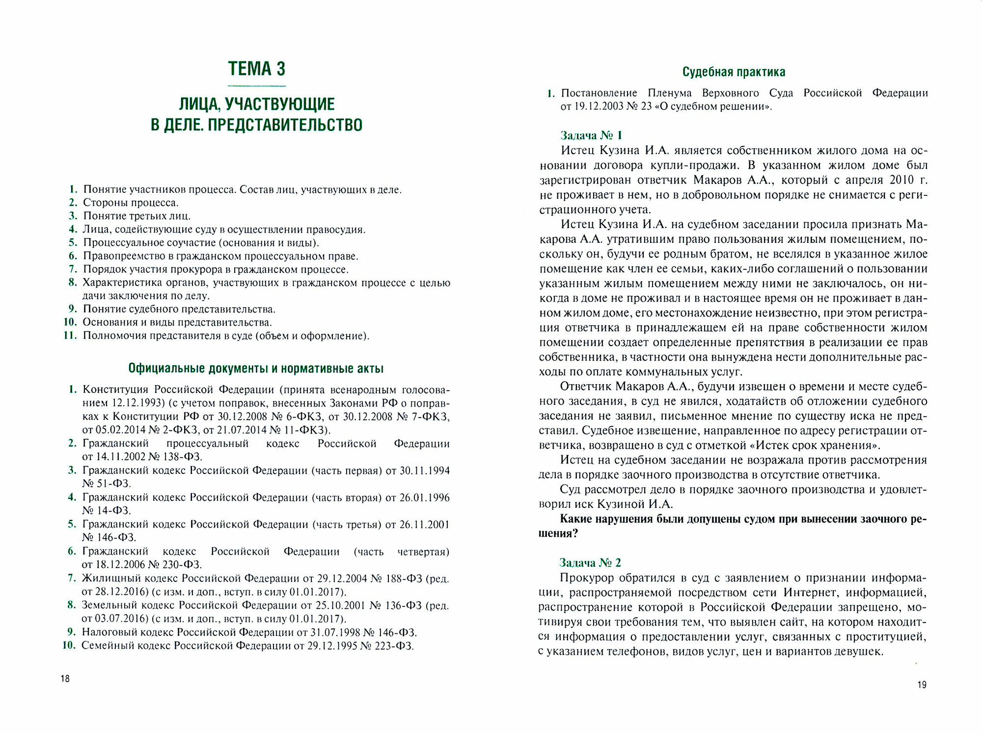 Содержит материалы, необходимые для формирования у учащихся навыков практического применения теоретических знаний и норм гражданского процессуального права к конкретным правовым ситуациям. Содержание соответствует программе изучаемого курса «Гражданский процесс», раскрывающей основные темы порядка защиты нарушенных или оспариваемых прав участников процесса в судах общей юрисдикции. Соответствует ФГОС СПО последнего поколения. Для студентов среднего профессионального образования, обучающихся по специальностям «Правоохранительная деятельность», «Право и организация социального обеспечения».