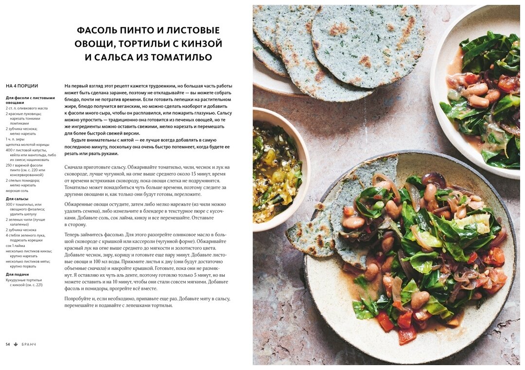 «Варианты использования листьев бесконечны. В основном мы едим их на гарнир, в салатах или супах либо добавляем для цвета в рагу, картофель и карри. А ведь они способны играть и главные роли — запеченный или жареный кочанчик салата может быть не менее вкусным, чем стейк, отчасти потому, что в нем сохраняется упругость благодаря крепкой сердцевине. Я не хочу сказать, что все должны стать вегетарианцами или веганами, суть книги в другом — я просто хочу показать, насколько интереснее может быть блюдо, если мясо, рыбу или молочные продукты использовать в качестве вкусового акцента к овощам, а не наоборот». (Кэтрин Фипс)