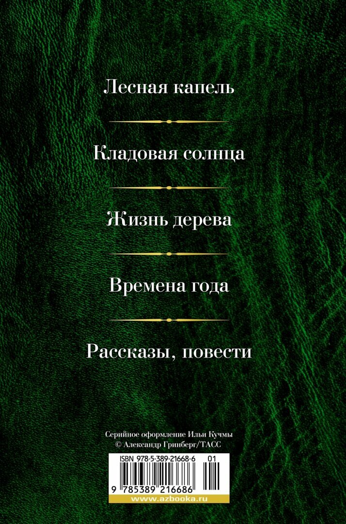 В настоящее издание вошли такие известные произведения М. М. Пришвина, как «Лесная капель», «Кладовая солнца», разделы книги «Глаза земли», а также повести и рассказы.
