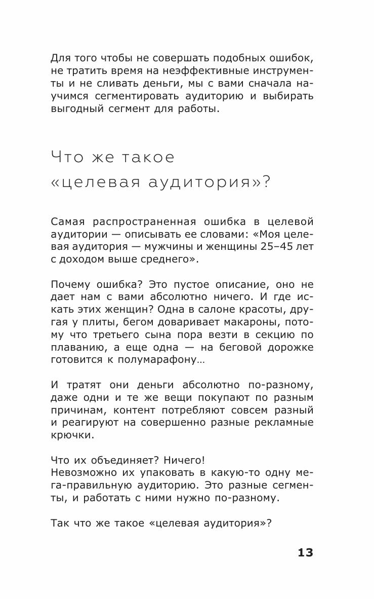 Я прочитала вот только что книгу и сразу пишу - это отличная книга! Все понятно, просто и очень легко начать в аккаунтах делать. Я уже целевую прописала и хэштеги начала по-новому ставить. А самое главное, я все откладывала начать продвигаться - тк это было непонятно и сложно. Пугало, а здесь с книгой можно потихоньку, по капельке))) Так не страшно и наконец оно у меня начало работать.