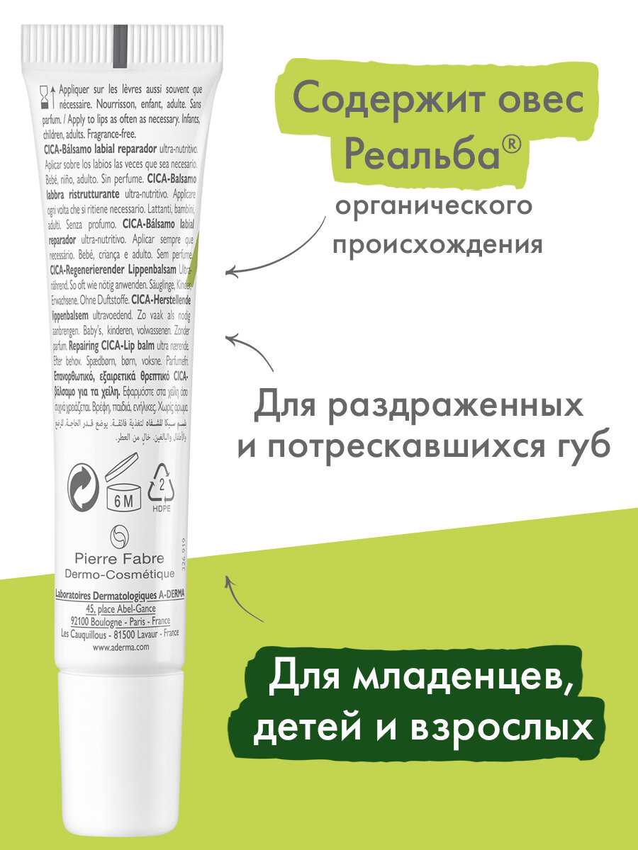 A-Derma Восстанавливающий бальзам для губ 0+ 15 мл (A-Derma ) Dermalibour+