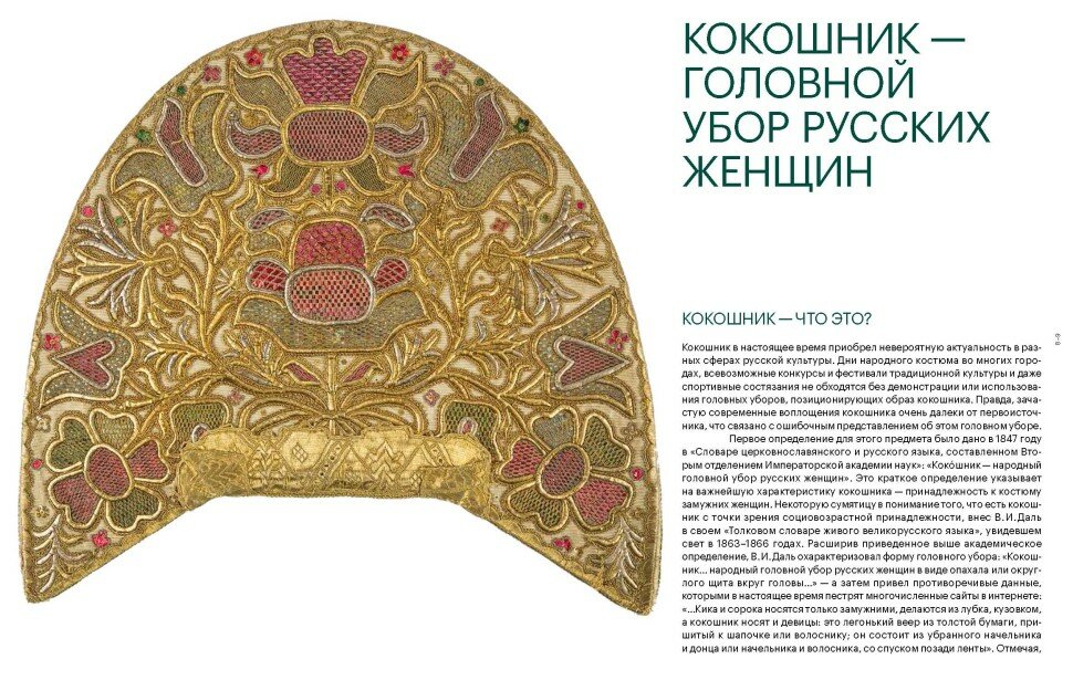 Книга умеет вдохновить на создания кокошника своими руками (по крайней мере меня). Информации в книги много и её разнообразие поражает, из неё можно узнать много интересного как о создании, так и о истории головного убора. Каждая статья сопровождается фотографиями и рисунками, что наглядно показывает нам внешний вид кокошника: форму, узоры и какими материалами он был украшен.