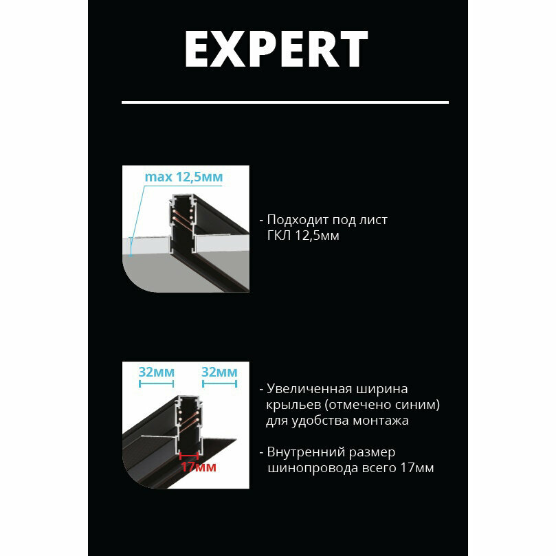 | коллекция | Arte Lamp магнитный встраиваемый ГКЛ 12,5мм Expert черный |