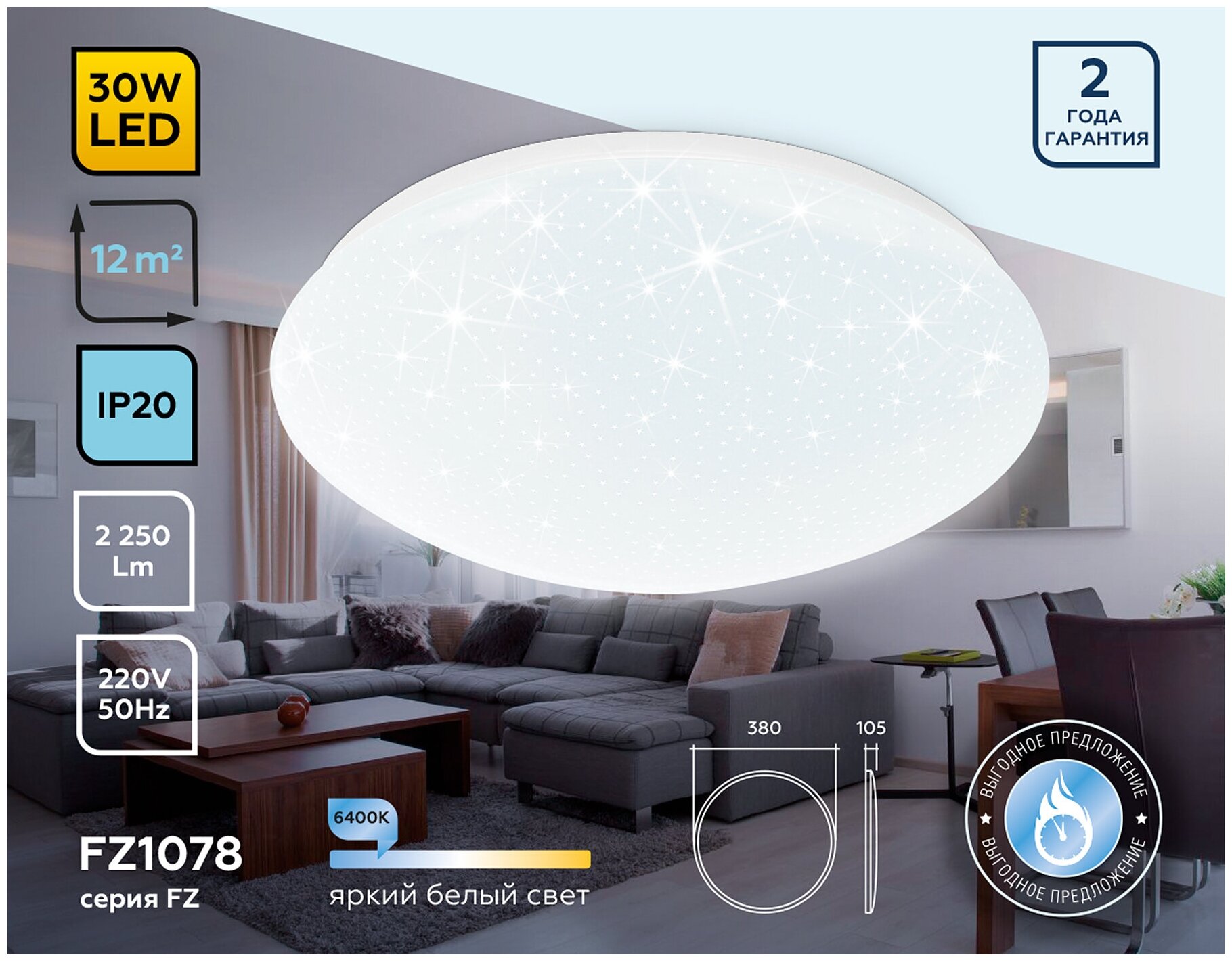 | Площадь освещения, м2 | 12 |