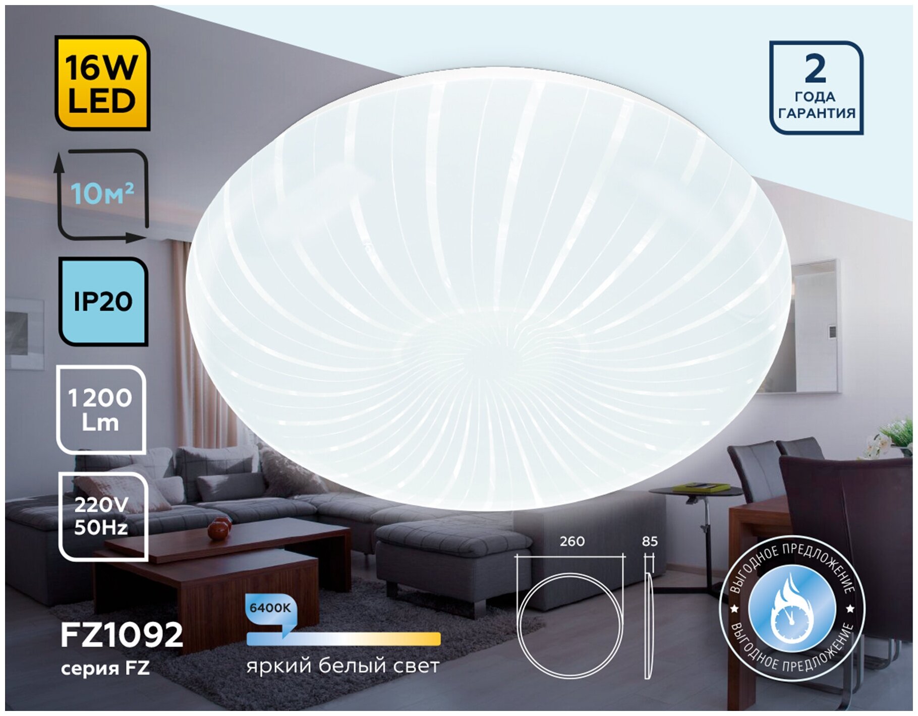 | Цветовая температура, K | 6400 |
