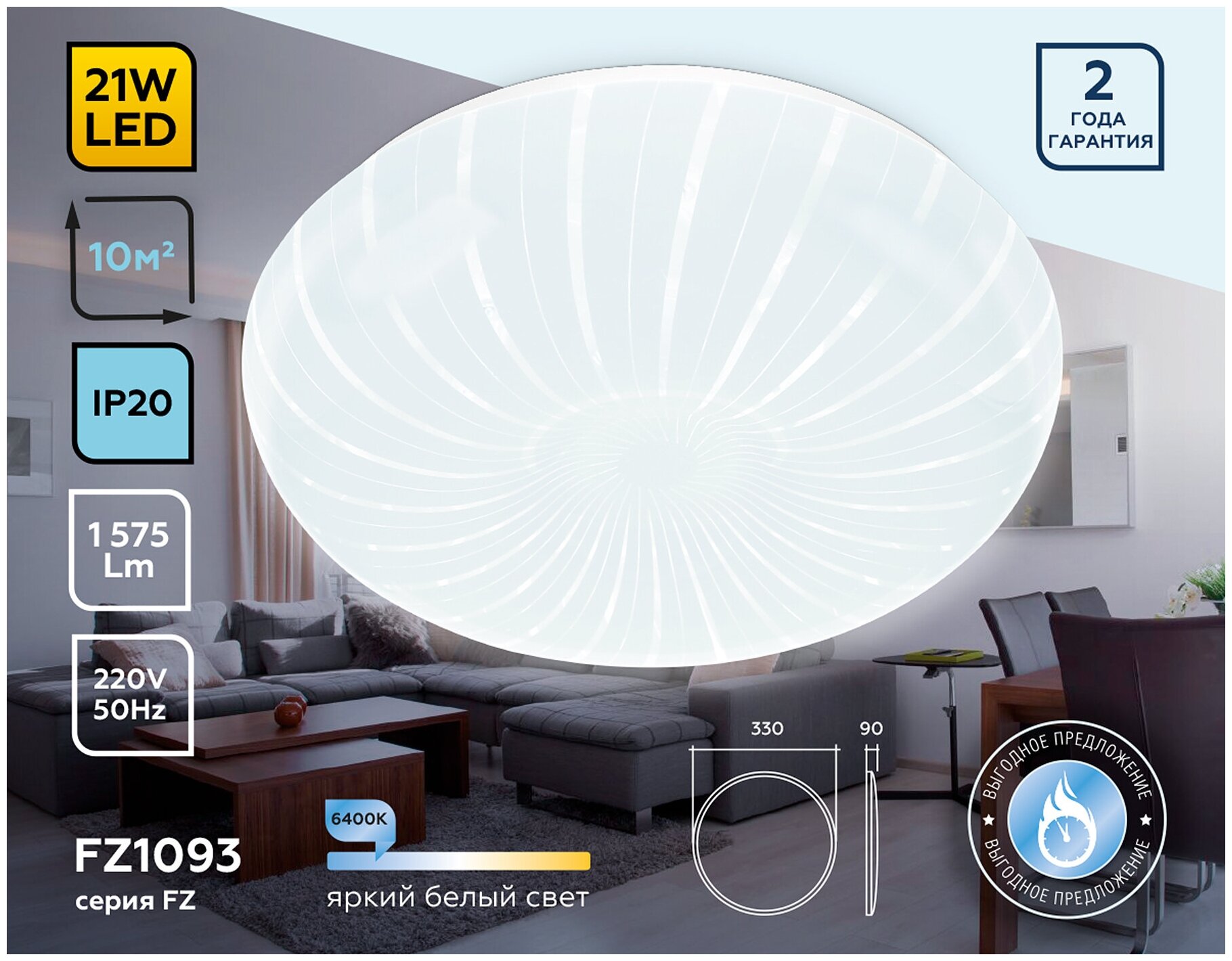 | Площадь освещения, м2 | 10 |