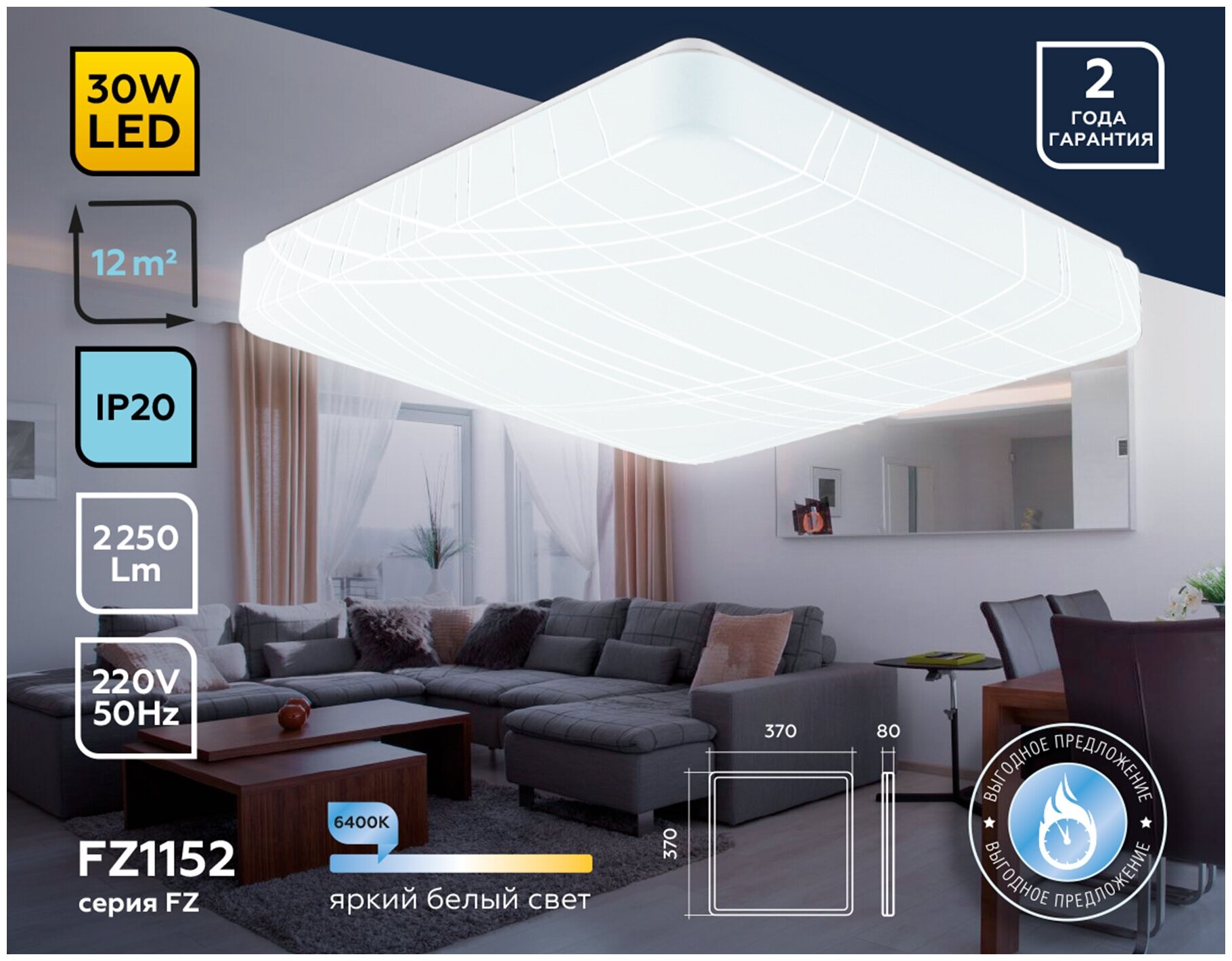 Светодиодный потолочный накладной светильник квадратный Ambrella Light Orbital мощностью 30 Вт. Изготовлен из акрила. Размеры: 37 х 37 см, высота 8 см. Встроенные светодиоды: мощность 30 Вт, цветовая температура 6400 К (холодный белый свет), световой поток 2250 Лм. Срок службы светодиодов: 50 000 часов. Для каждого дома правильно подобранное освещение очень важно. Необычный настенно-потолочный квадратный интерьерный светильник бренда Ambrella Light (Амбрелла Лайт) оснащен LED-модулем и плафоном из пластика. Интересный навесной плафон имеет ширину 37 см. Электрический светильник мощностью 30 Вт (аналог 200 Вт, который дает обычная лампа накаливания), с цветовой температурой 6400 К, что дает холодный яркий белый свет, световым потоком 2250 Лм, степенью защиты IP20 и надежным основанием для крепления. Срок службы светодиодов: 50 000 часов. Комнатный плоский светодиодный светильник на основе имеет крепление - держатель, образуя при монтаже отступ от потолка 8 см. Может использоваться как красивая люстра, осветит рабочее пространство, подойдет для учебы, работы, чтения, творческих занятий или игр. Но кроме практичности наш прибор освещения еще и органично вписывается в декор комнаты. Светящийся аксессуар современного дизайна - это классика. Он универсален и подойдет для любой комнаты в квартире или доме: спальни взрослого или подростка, гостиной, кухонного пространства, дачного домика. Его можно разместить в кабинете, фотостудии или профессиональном салоне красоты, студии маникюра и педикюра, парикмахерской, где так необходима дополнительная подсветка. Домашний и офисный светильник будет смотреться стильно и современно в помещении любого интерьера. Оригинальный дизайнерский плафон подходит для использования в сухих помещениях.