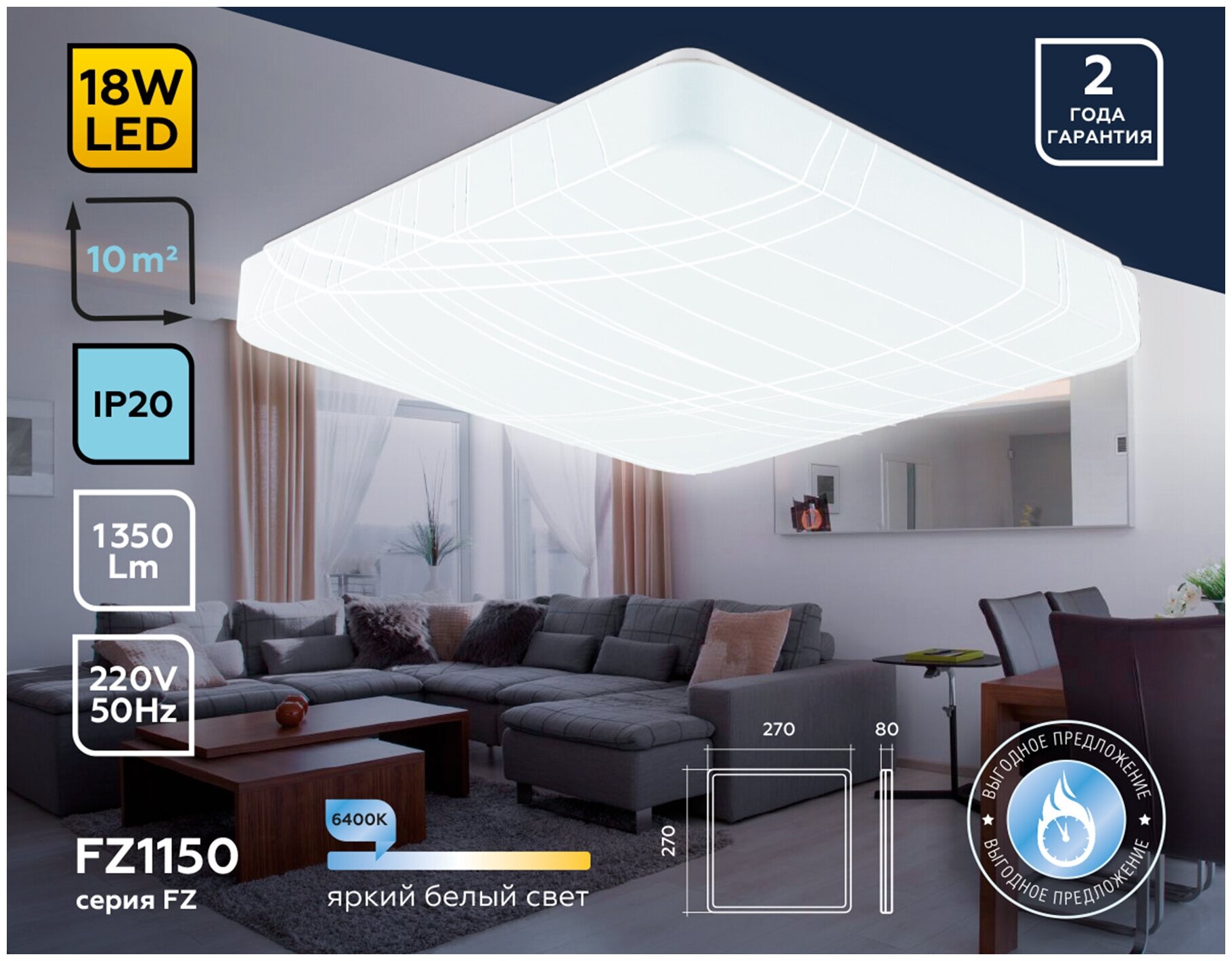 | Площадь освещения | 10 м2 |