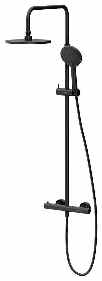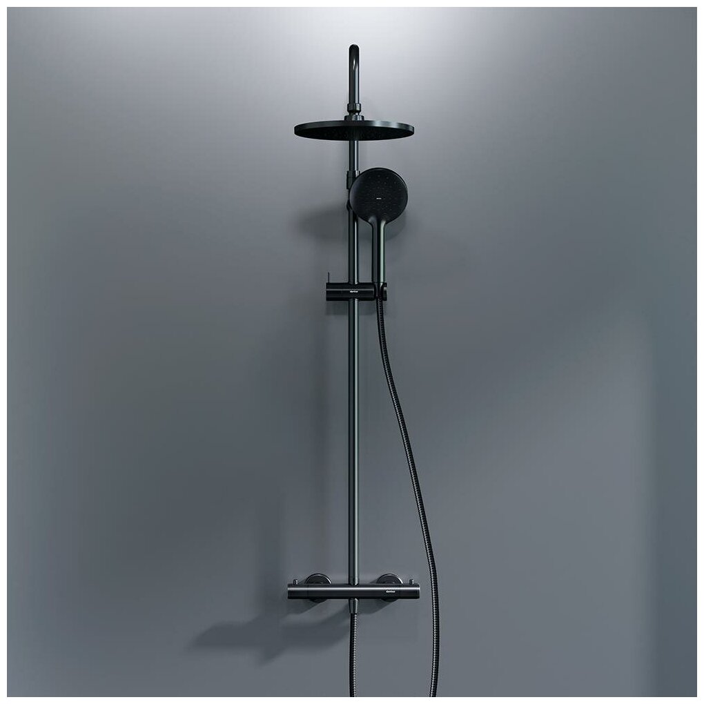 Душевая стойка Damixa Option DX218091300 черный матовый. Увеличенные душевые лейки позволят полностью насладиться душевыми процедурами - взбодриться утром и расслабится вечером. Верхний душ диаметром 230 мм, ручной душ диаметром 120 мм. Длина душевой штанги составляет 1030-1460 мм, ее можно установить на любой высоте и комфортно пользоваться душем людям любого роста. Термостатический картридж новейшего поколения моментально реагирует на изменения температуры или давления и защитит вас от ожога даже при внезапном откоючении холодной воды. Глубокий матовый цвет дополнен покрытием High Gloss, которое уберегает поверхность душевой системы от мелких повреждений. Наши инженеры рассчитали оптимальное расстояние между форсунками для распределения напора воды равномерно по всей лейке. В комплекте имеется душевой шланг с защитой от перекручивания.
