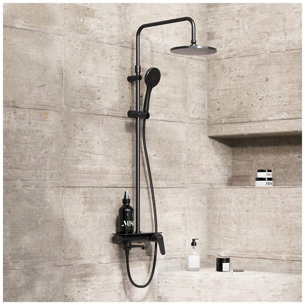 Душевая стойка Damixa Jupiter 977730300 черный матовый. Минималистичные тонкие линии и плавные углы будут пленительно приковывать взгляд и завершать интерьерную композицию ванной комнаты. Термостатический картридж новейшего поколения моментально реагирует на изменения температуры или давления и защитит вас от ожога даже при внезапном откоючении холодной воды. Продуманные детали для удобства использования: штанга регулируется по высоте в диапазоне от 1030 до 1460 мм, обеспечивая комфорт для людей любого роста. Глубокий матовый цвет дополнен покрытием High Gloss, которое уберегает поверхность душевой системы от мелких повреждений. Приятно удивит многофункциональная полочка, встроенная в смеситель для хранения нужных средств для ухода.