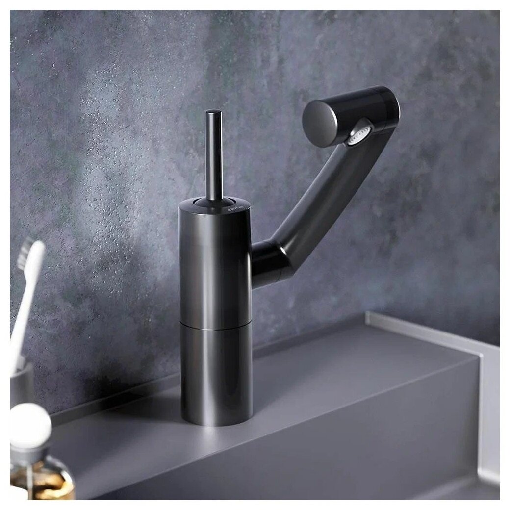 Смеситель для раковины Damixa . Инновационный смеситель серии Arc теперь в матовом черном исполнении. Абсолютная инновация от Damixa аэратор смеситель поворачивается на все 360, обеспечивая точное попадание струи в любое место раковины или мойки. Специальное антискользящее покрытие позволяет управлять углом струи легко, даже с мокрыми руками. Смеситель для раковины Arc это бескомпромиссное решение для ванной комнаты. Инновационная конструкция, позволяющая регулировать высоту излива, положение аэратора и направление потока воды, несравнима по своему функционалу с любым другим продуктом индустрии. Глубокий матовый цвет дополнен покрытием High Gloss, которое уберегает поверхность смесителя от мелких повреждений.