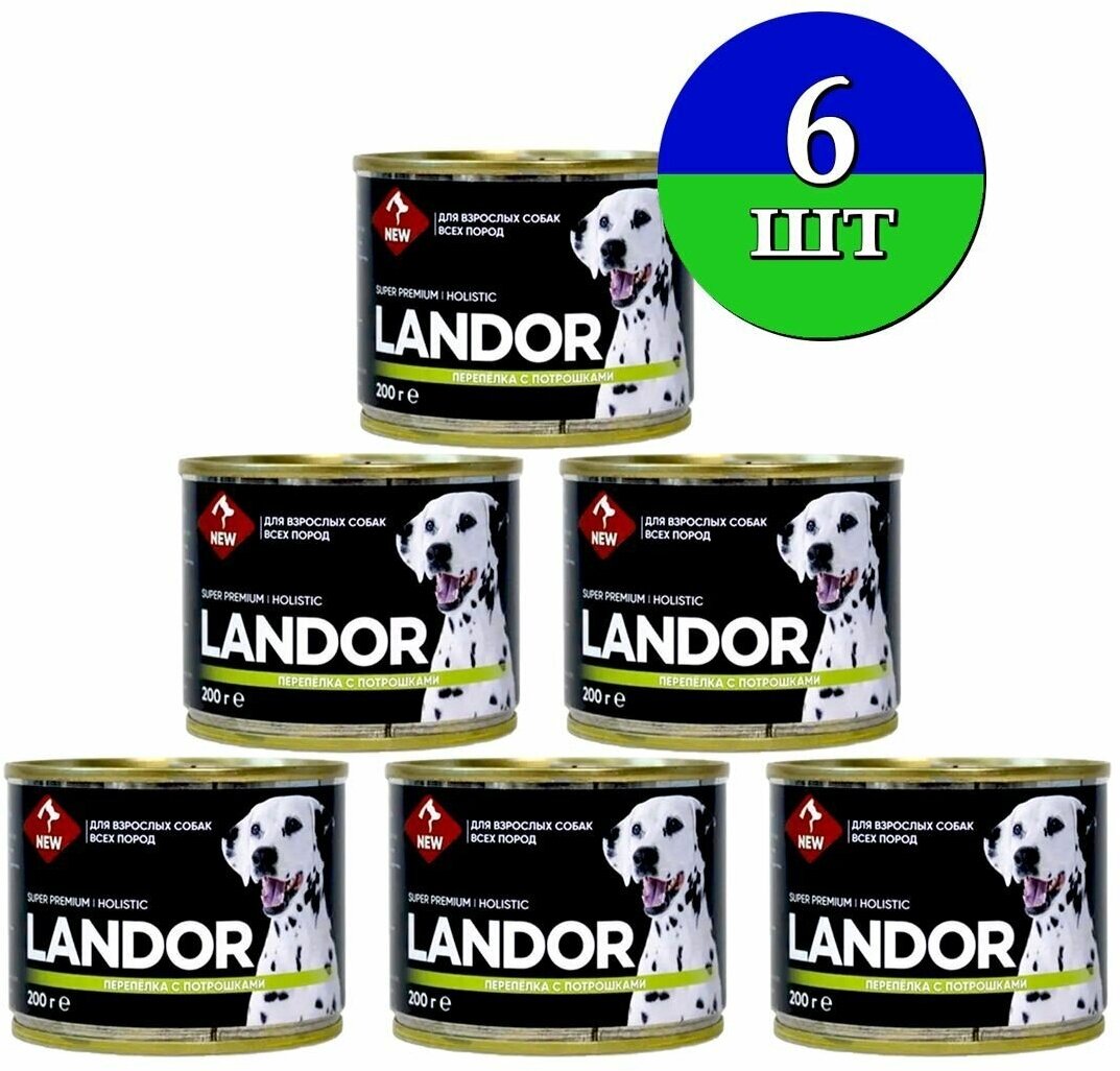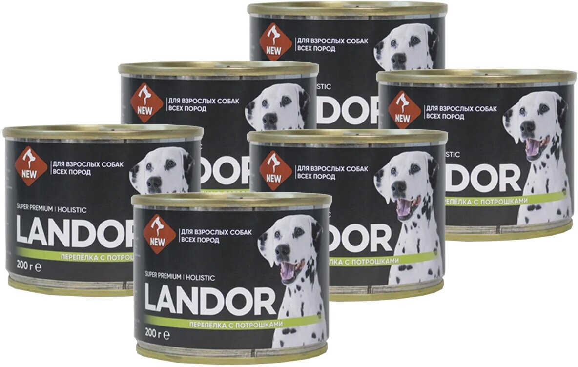 Landor полнорационный консервированный влажный корм для собак всех пород (Перепёлка с потрошками 200 г.) для взрослых собак всех пород с перепелкой и потрошками (200 гр)