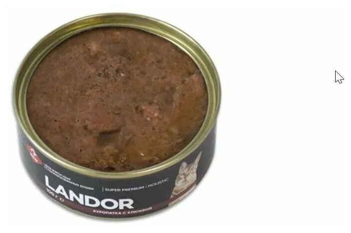 Один из лучших консервированных кормов для кошек! Корм LANDOR действительно соответствует "супер-премиум" классу. Только натуральные ингредиенты, отличная консистенция и приятный запах. Кот ест паштеты Landor всегда с большим удовольствием!