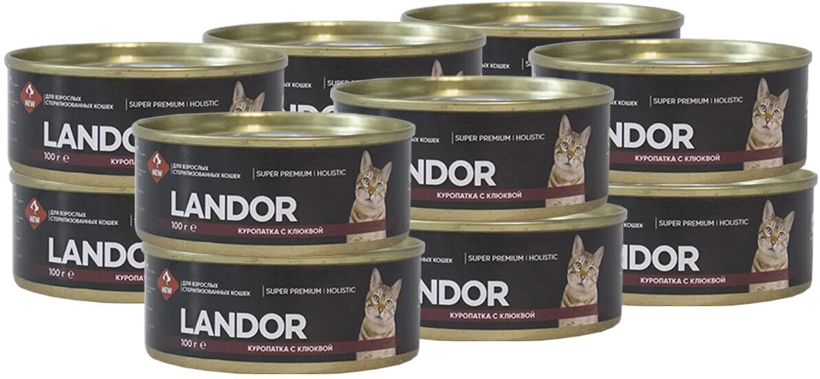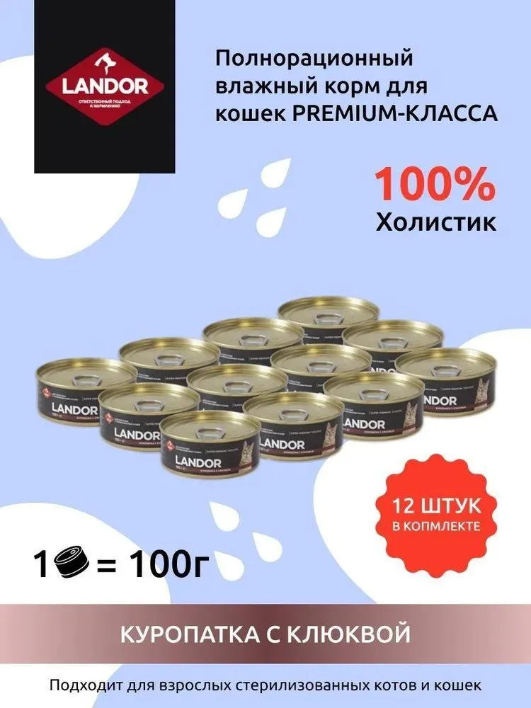 Landor полнорационный консервированный влажный корм для стерилизованных кошек (Куропатка и клюква 100 г.)