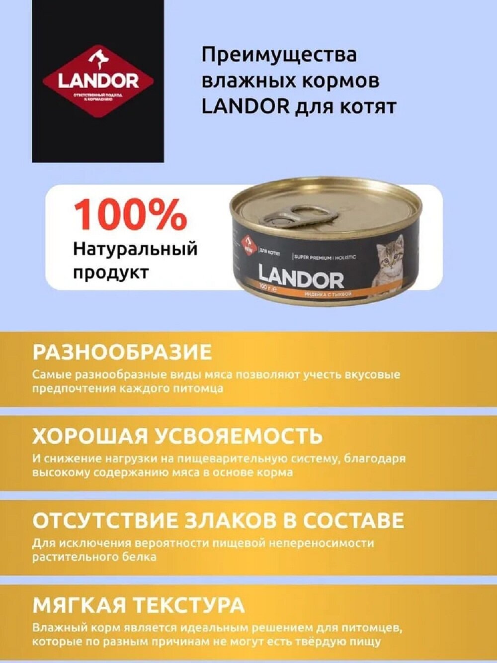 Landor полнорационный консервированный влажный корм для котят (Индейка и тыква 100 г.)
