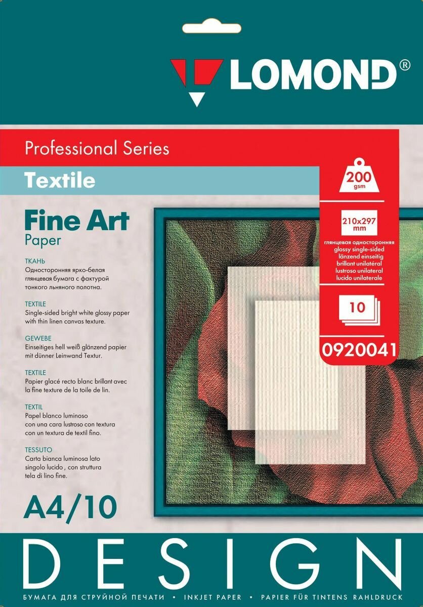Фотобумага Lomond формат A4, плотность 200г/м2, 10 листов, односторонняя, покрытие глянцевое, фактура лён, для струйной печати, белый (0920041)
