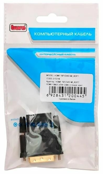 Адаптер Buro черный, коннекторы DVI-D (m)/HDMI (f), Позолоченные контакты (BHP RET ADA_HDMI-DVI)