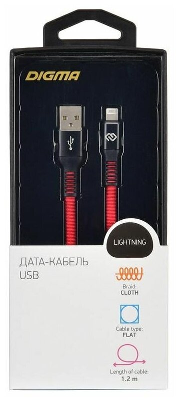 Кабель Digma USB (m)-Lightning (m) 1.2м (light-1.2m-red)