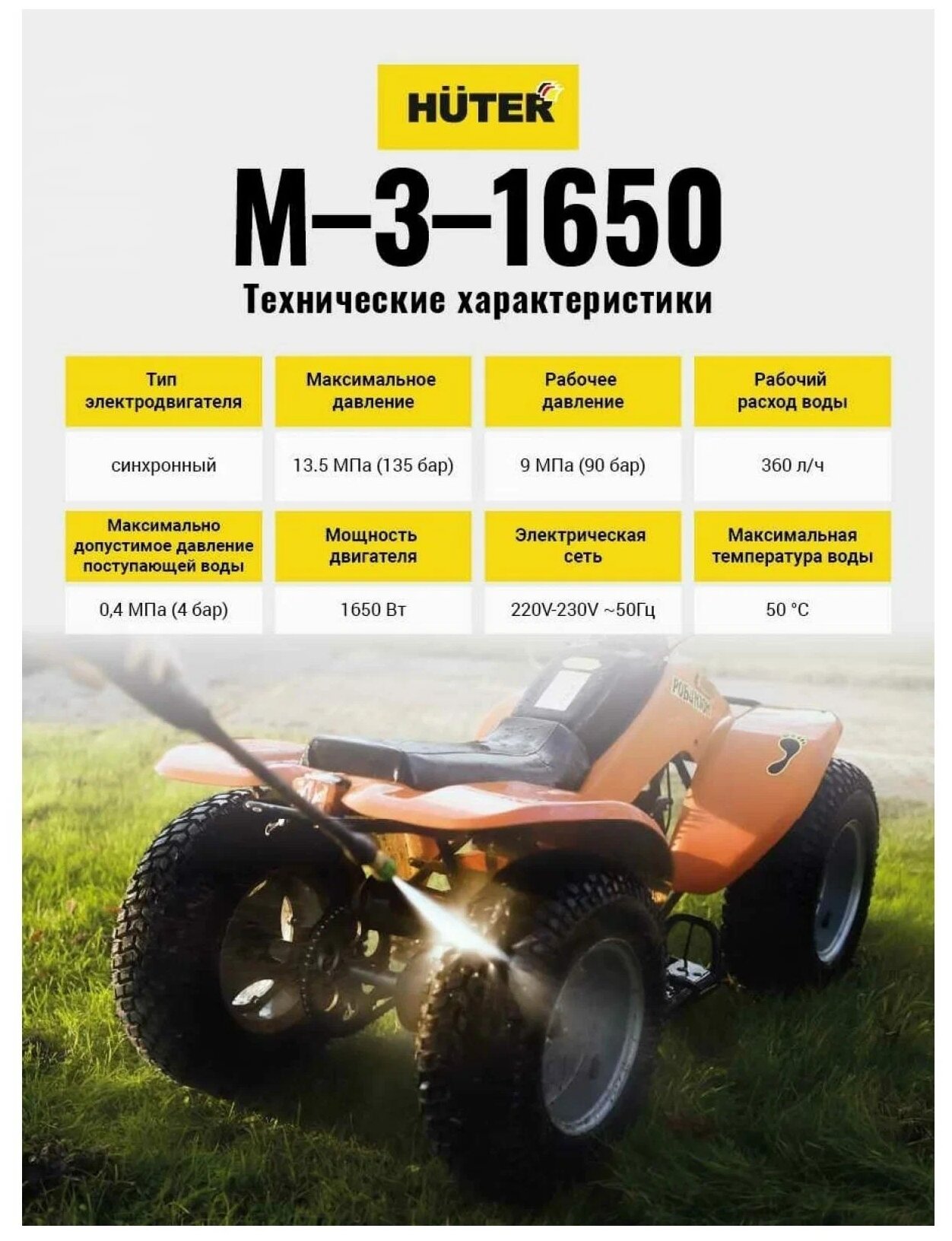 Минимойка Huter M-3-1650, мощность 1650Вт, максимальное давление 135Бар, длина шланга 5м (70/8/28)