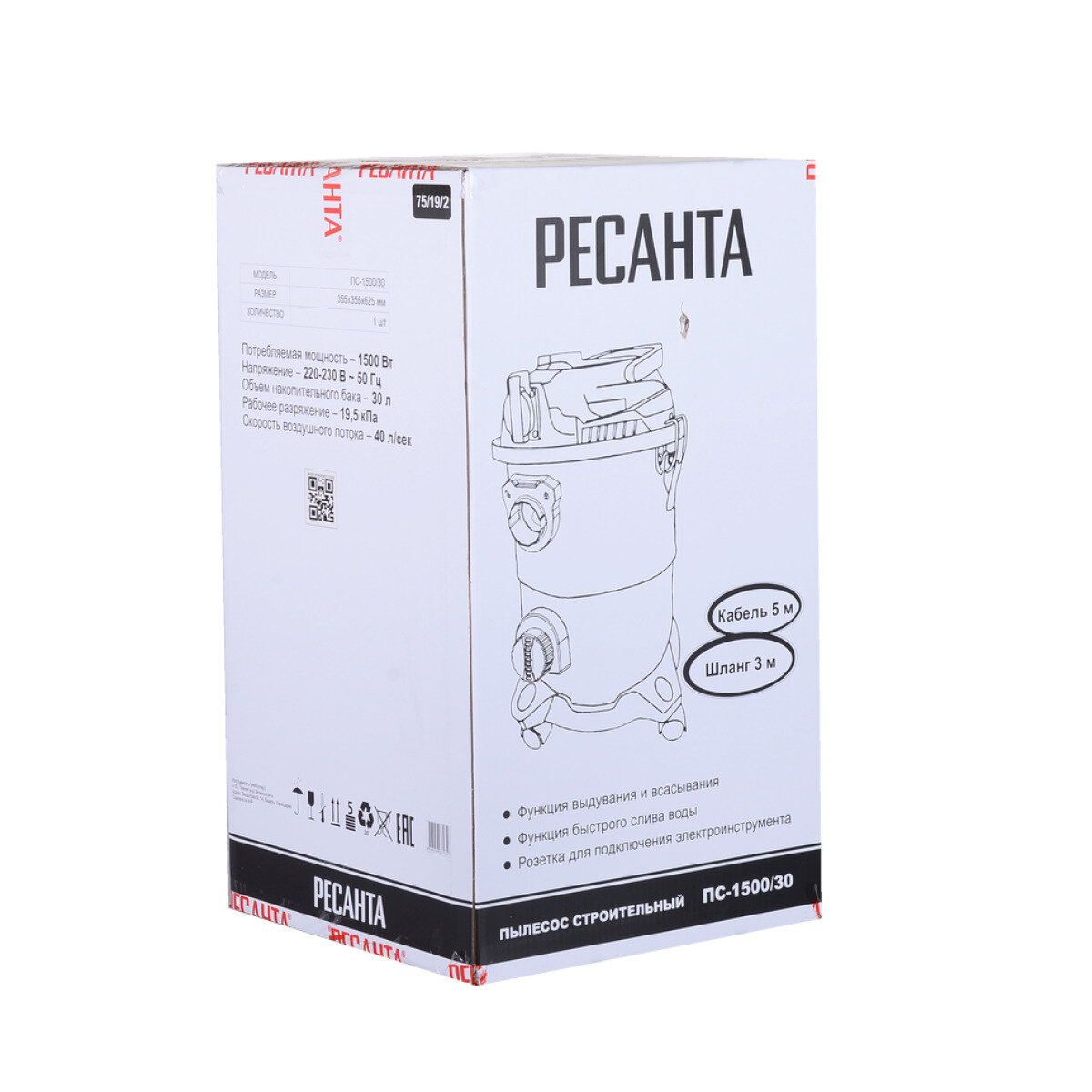 Модель: Пылесос строительный Ресанта ПС-1500/30 75/19/2