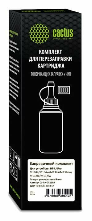 Тонер Cactus CS-RK-CF218A черный, флакон, в упаковке 1 x 55грамм, для принтера HP LJ Pro M104/M132