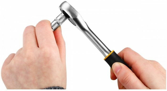 Набор по качеству, наверное, не дотягивает до ведущих производителей, но по соотношению цена/качество очеатонь неплохо. Трещотка, удлинитель, головки - ни к чему нет претензий. Трещотка крутится, переключается достаточно гладко. Материал инструментов хром-ванадиевая сталь.