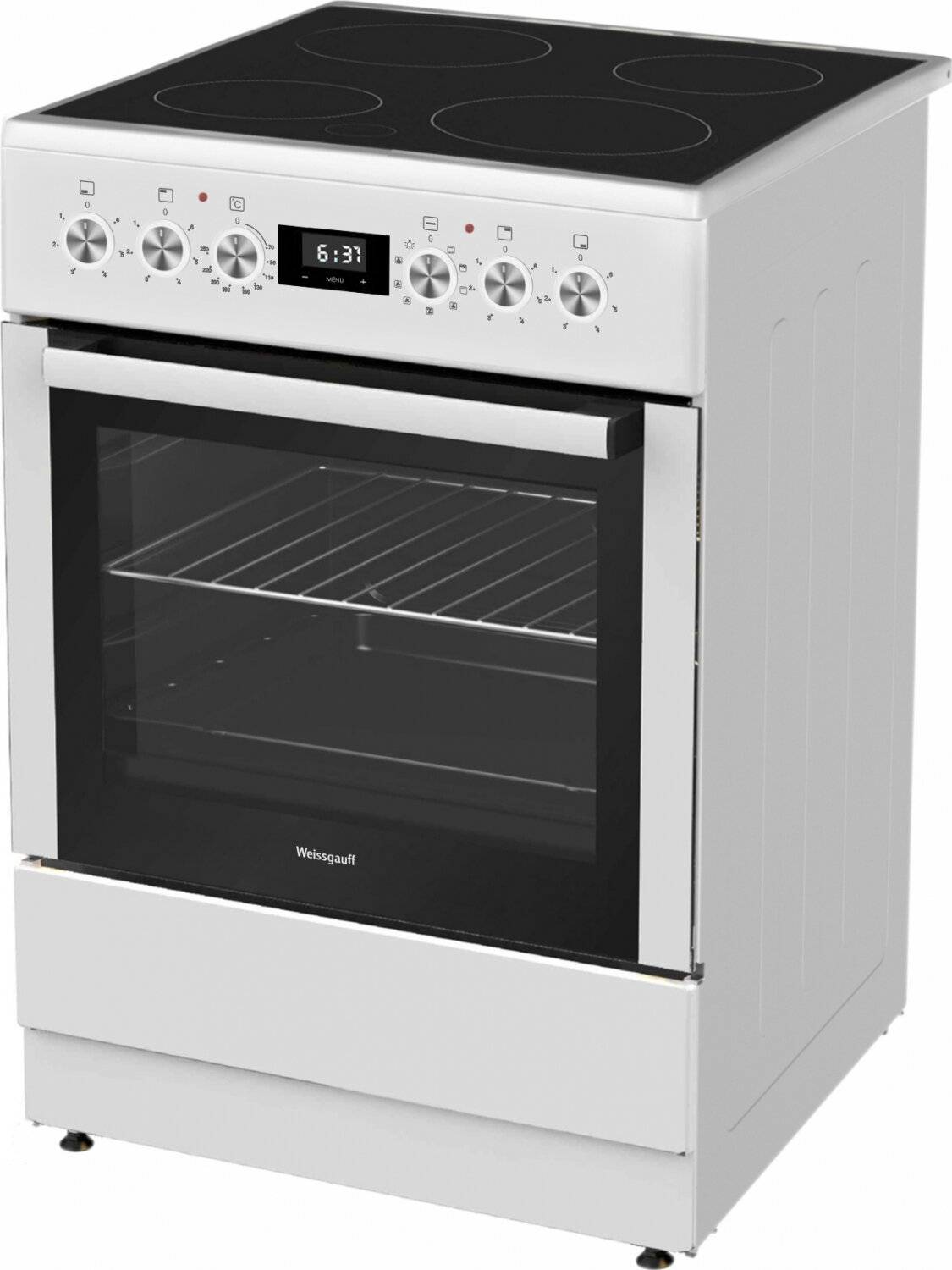 Плита электрическая Weissgauff WES E12V15 WE белый, отдельностоящая, поверхность стеклокерамика, электрических конфорок: 4, механическое управление, объём духовки 60л (430132)