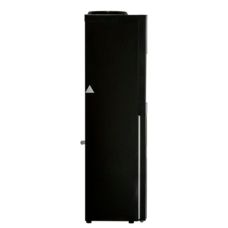 Напольный кулер для воды Aqua Work V901 с нагревом и электронной системой охлаждения воды в черном стальном корпусе, оснащенном шкафчиком.Бутыль с питьевой водой ставится на аппарат сверху.НагревМощностью 420 Вт, емкость бака - 1 литр, нагревает 5 и более литров за час до температуры 90-96 градусов.ОхлаждениеЭлектронное охлаждение работает на элементах Пельтье и позволяет получать 2-3 стакана в час прохладной воды (охлаждает всего на 12-15 градусов ниже температуры в комнате). Хотите пить по-настоящему холодную воду? Тогда Вам нужен компрессорный диспенсер, например, очень похожий аналог.КорпусГлубокое насыщенное черное покрытие Акваворк V901 отражает в себе все помещение - эффектно, хотя и заставляет чаще протирать корпус от пыли и следов пальцев. Две серебристые детали - каплесборник и верхняя часть фасада с логотипом и двумя светодиодными индикаторами, показывающими текущий режим работы.Тумблеры включения / выключения нагрева и охлаждения расположены сзади. Шкафчик (не холодильная камера, а просто шкафчик) занимает весь низ кулера, емкость - 14 литров (размеры - 230х175х360 мм). Других красот на аппарате нет, очень минималистичный дизайн.К диспенсеру Aqua Work V901 подходят любые стаканодержатели - с креплением и на шурупах, и на магните, лучше заказывать серебристые, в тон вставкам.