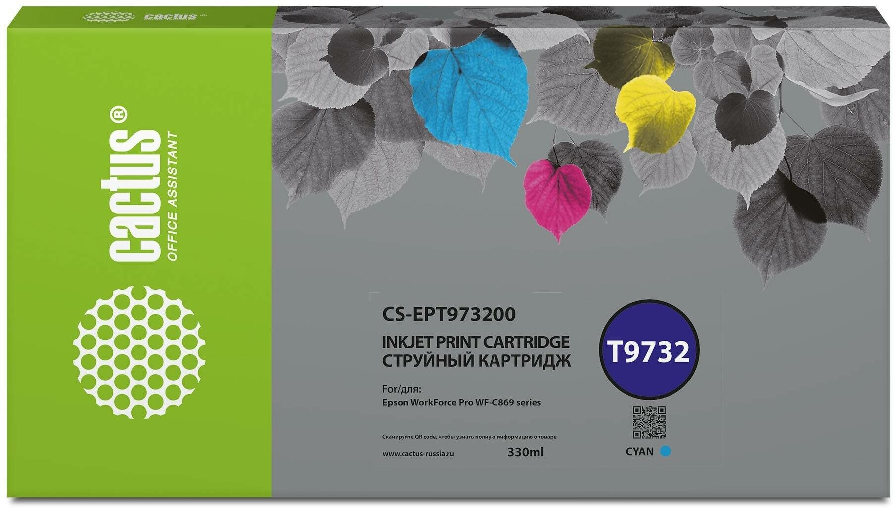 Картридж струйный Cactus CS-EPT973200 T9732 голубой (330мл) для Epson WorkForce WF-C869RD3TWFC/WF-C869RDTWF