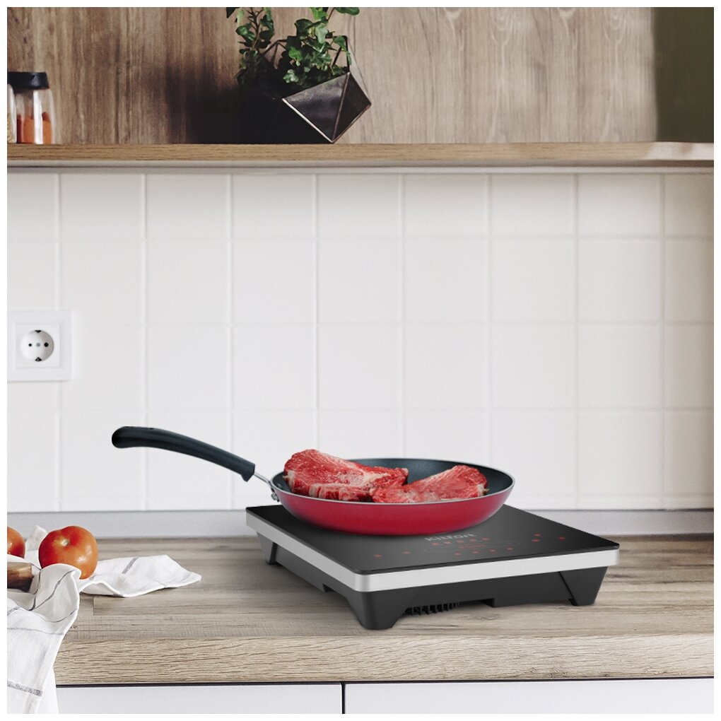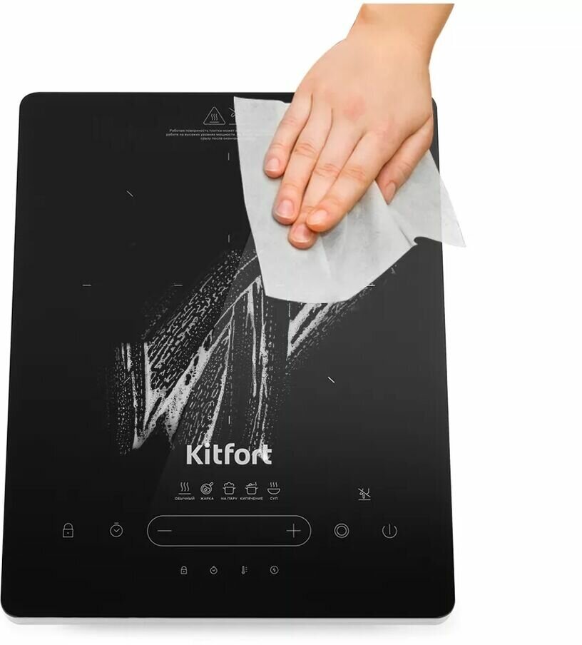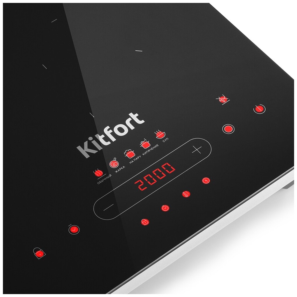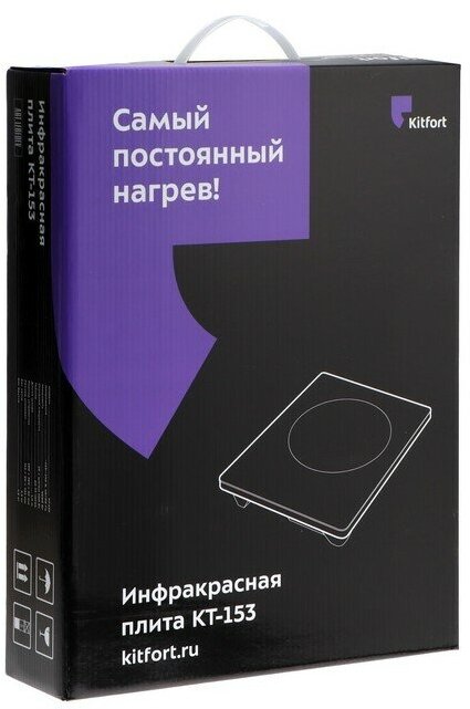 Инфракрасная плита KT-153 использует современные технологии и приготовит ваши любимые блюда вкусно и очень быстро! Она выполнена в пластиковом корпусе с рабочей поверхностью из стеклокерамики и обладает мощностью до 2000 Вт! В отличие от индукционных плит, инфракрасная плита не имеет импульсного режима. Нагрев происходит постоянно даже на самых минимальных мощностях. Индикатор Горячо предупредит вас о возможности получения ожога, когда поверхность плиты сильно нагрета. Плита имеет 4 автоматических режима: жарка, кипячение, на пару, суп и обычный режим, где вы можете настроить необходимый нагрев от 100 до 2000 Вт! Вы можете установить таймер до 24 часов, а функция блокировки кнопок сохранит заданные вами настройки. Перед тем как очистить плиту, дождитесь остывания рабочей поверхности до комнатной температуры. Затем вы можете с легкостью убрать поверхность плиты от остатков пищи, пригорелости и прочих загрязнений, используя моющие средства и тканевые салфетки. Для инфракрасной плиты Kitfort KT-153 подходит практическая любая посуда, однако рекомендуется использовать посуду с плоским дном. Плита выдерживает вес не более 10 кг. На обратной стороне плиты встроен вентилятор, который способствует быстрому охлаждению устройства во время интенсивной работы и после её завершения. Устройство оборудованао противоскользящими ножками, придающие плите устойчивое положение на поверхности. Устройство имеет компактные размеры: 28 х 36 см и минималистичный дизайн, благодаря чему плита легко впишется в интерьер вашей кухни!
