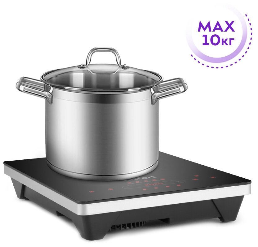 | Особенности | Плита имеет 4 автоматических режимажарка, кипячение, на пару, суп и обычный режим, где вы можете настроить необходимый нагрев от 100 до 2000 Вт. |
