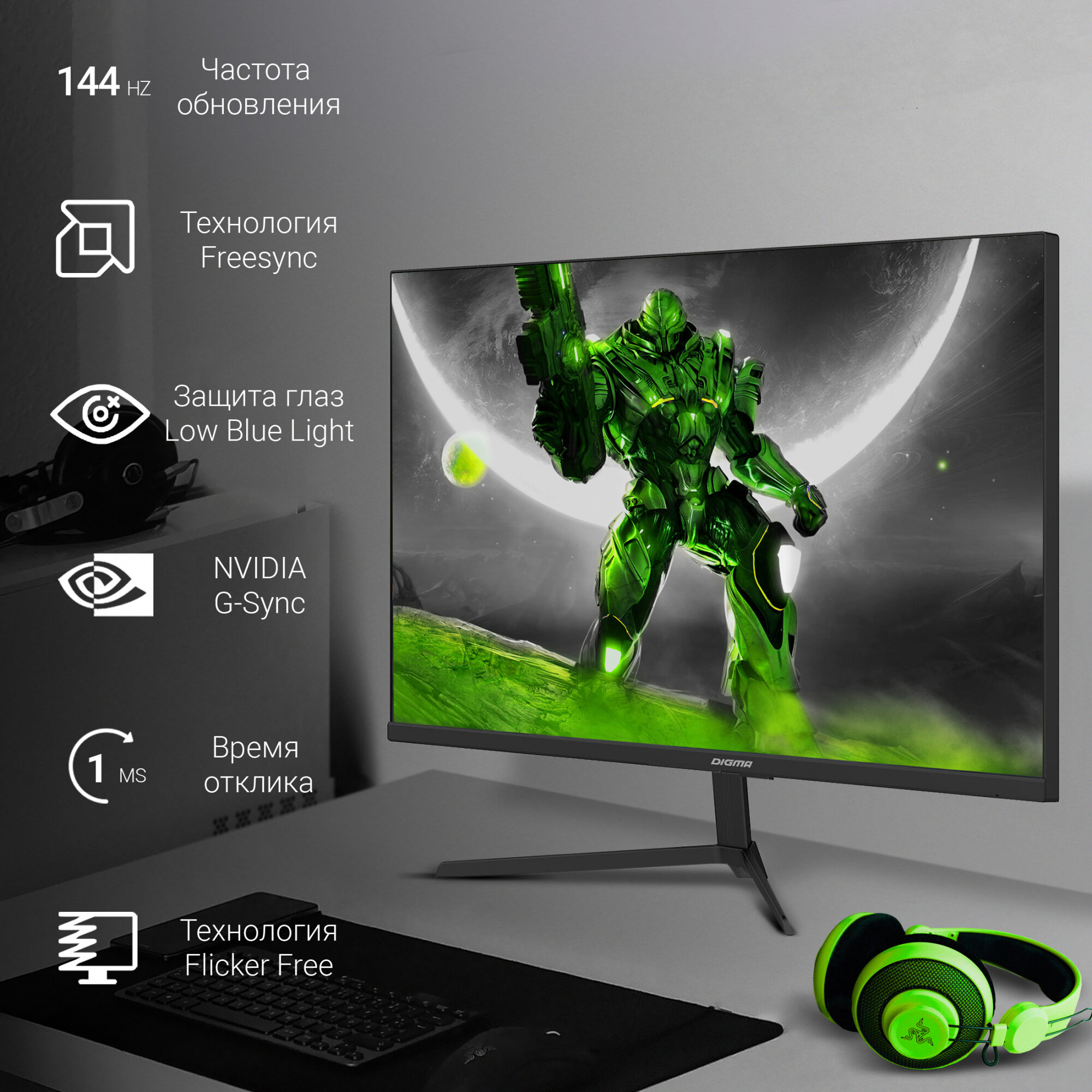 23.8" Монитор DIGMA DM-MONG2420 Black 144Hz 1920x1080 IPS - это идеальное решение для геймеров, которые ценят комфортное и качественное воспроизведение изображения.