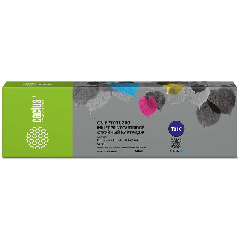 Картридж струйный Cactus CS-EPT01C200 T01C2 голубой (68мл) для Epson WorkForce Pro WF-C529RDTW/WF-C579RD2TWF/WF-C579RDTWF Pro