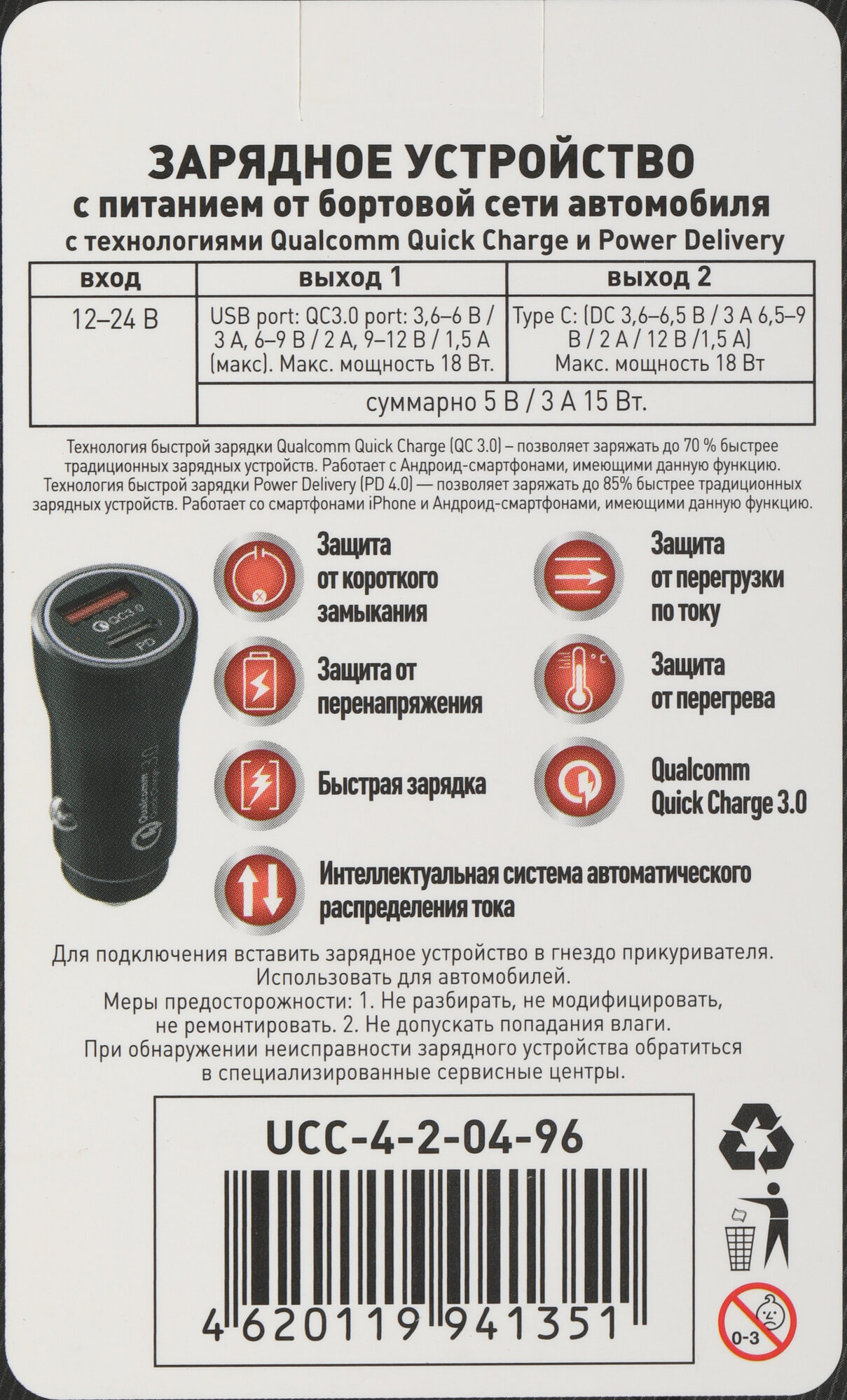 | Тип | Автомобильное зарядное устройство |