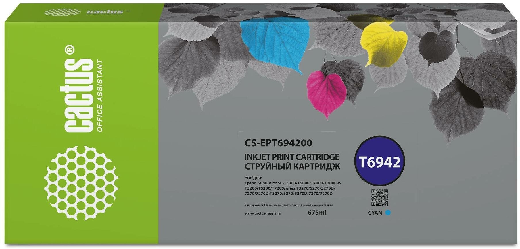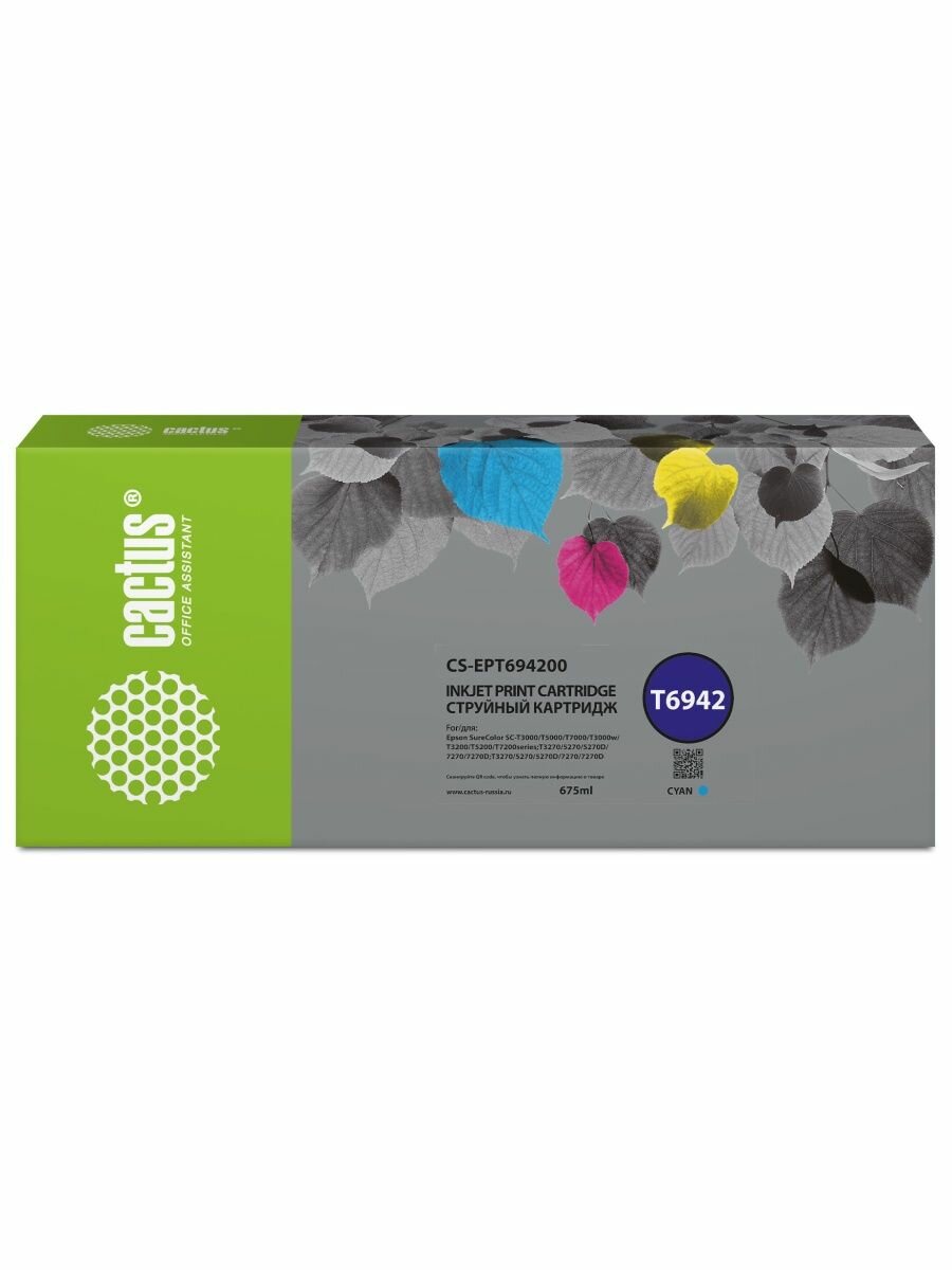 Картридж струйный Cactus CS-EPT694200 T6942 голубой (675мл) для Epson SureColor SC-T3000/T3070/T3200/T5000/5200