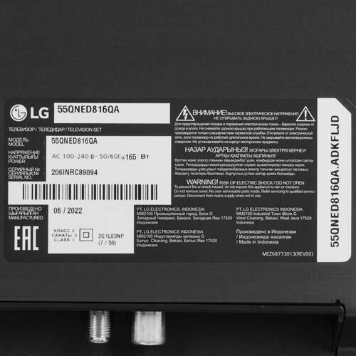 | Прочие особенности | Телевизор LED LG 55QNED816QA с фирменной технологией LG NanoCell обеспечивает формирование детализированного и реалистичного изображения с точностью передачи каждой детали. Данная модель оборудована экраном 55 дюймов с разрешением 4K и подсветкой Mini LED. Технология HDR 10 Pro улучшает передачу и глубину богатой палитры оттенков. Чистый насыщенный звук достигается благодаря акустике 20 Вт с технологией Dolby Digital., К примечательным характеристикам LG 55QNED816QA относится платформа Smart TV под управлением webOS. В телевизоре реализованы востребованные интерфейсы беспроводного подключения, а также порты и разъемы для подключения различных внешних устройств. Пульт Magic Remote гарантирует интуитивное управление. Минимально узкая рамка с 3-х сторон способствует максимальному погружению в просмотр на большом экране. |