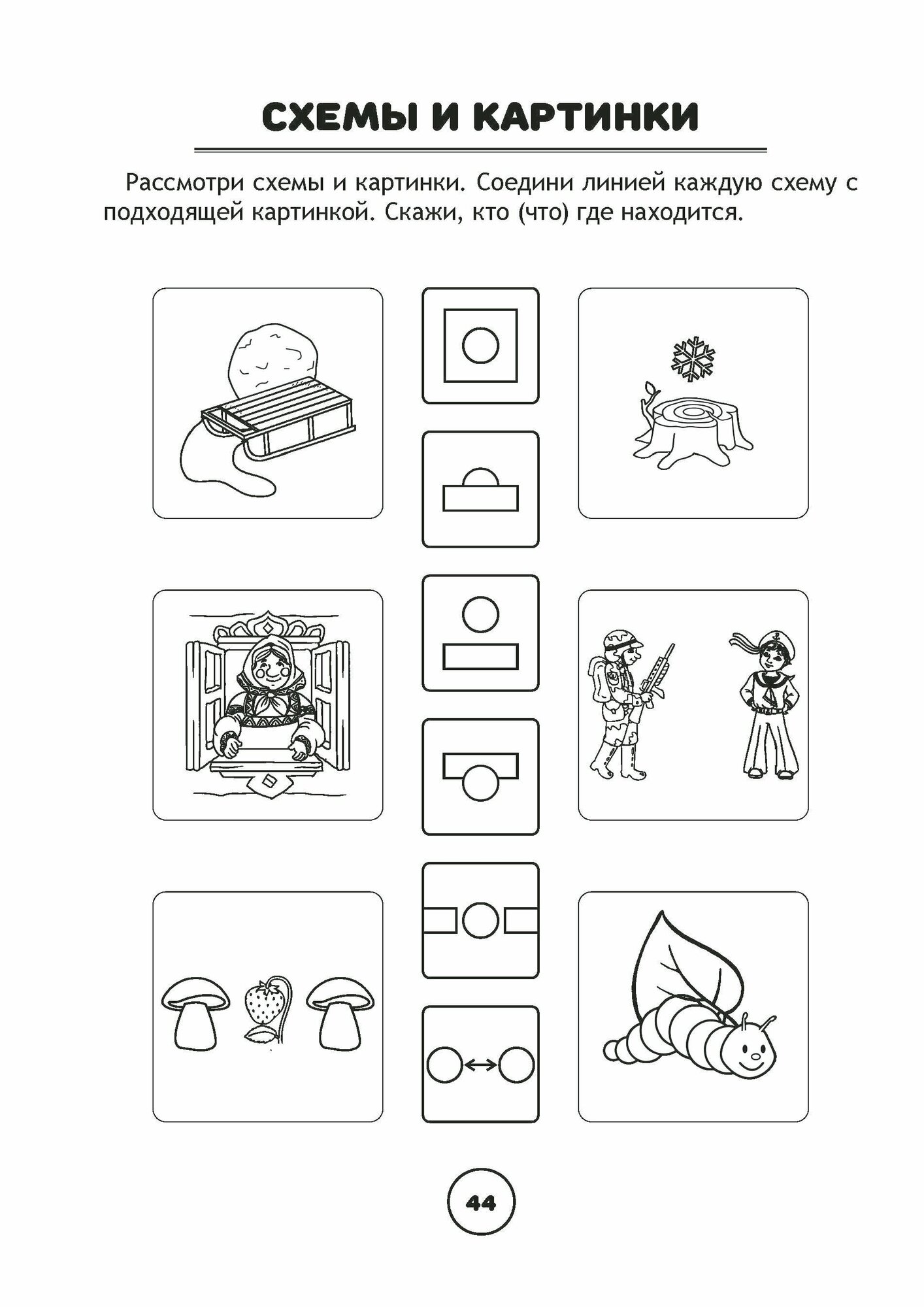 Пособие посвящено формированию пространственных представлений ребенка дошкольного возраста 4-6 лет. Представлены игровые задания на понимание пространственных понятий "верх-низ", "лево-право", "на", "над" и др., используются графические упражнения, что способствует развитию мелкой моторики и подготовке руки к письму.