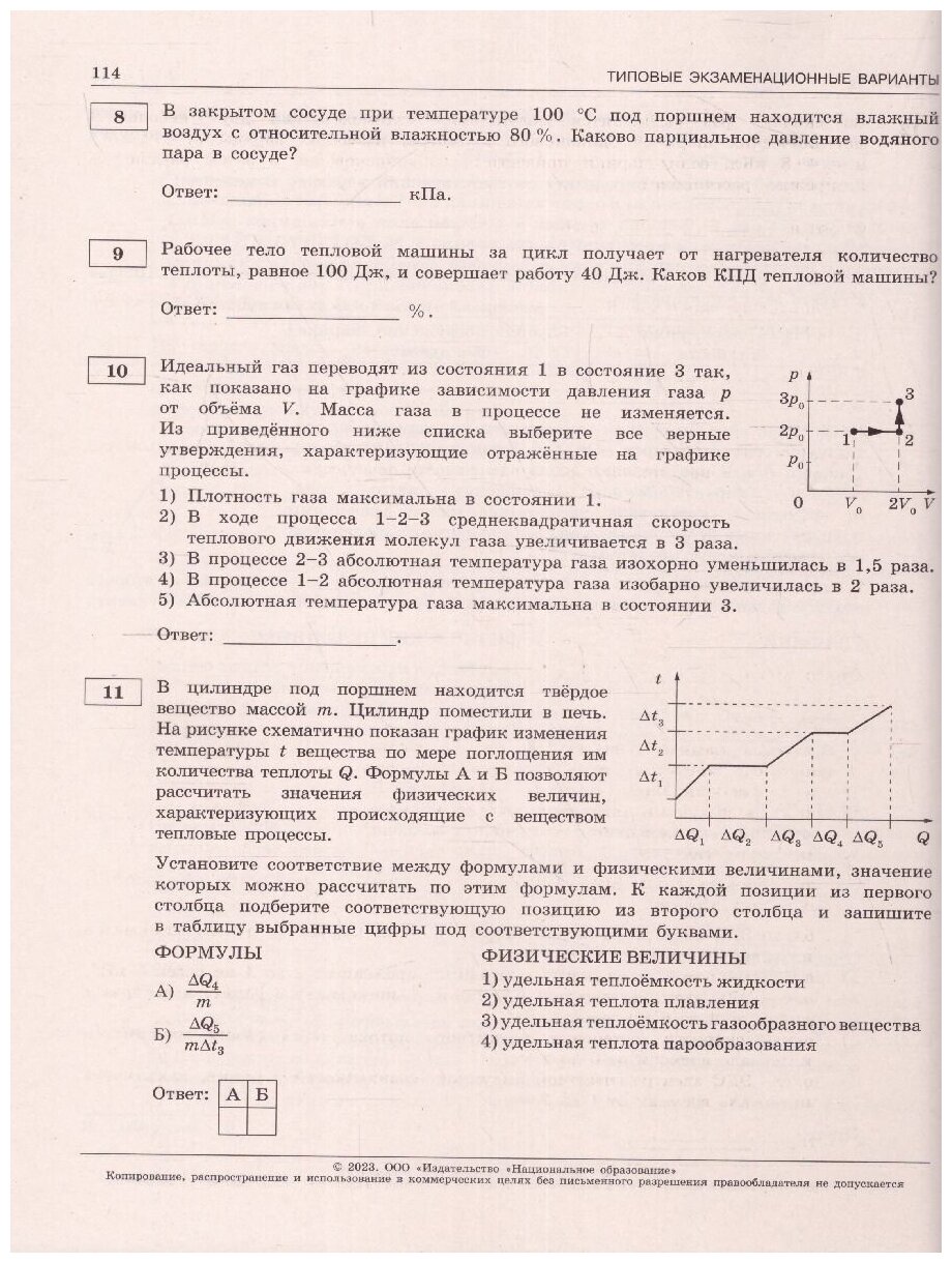 - 30 типовых экзаменационных вариантов, составленных в соответствии с проектом демоверсии КИМ ЕГЭ по физике 2023 года;